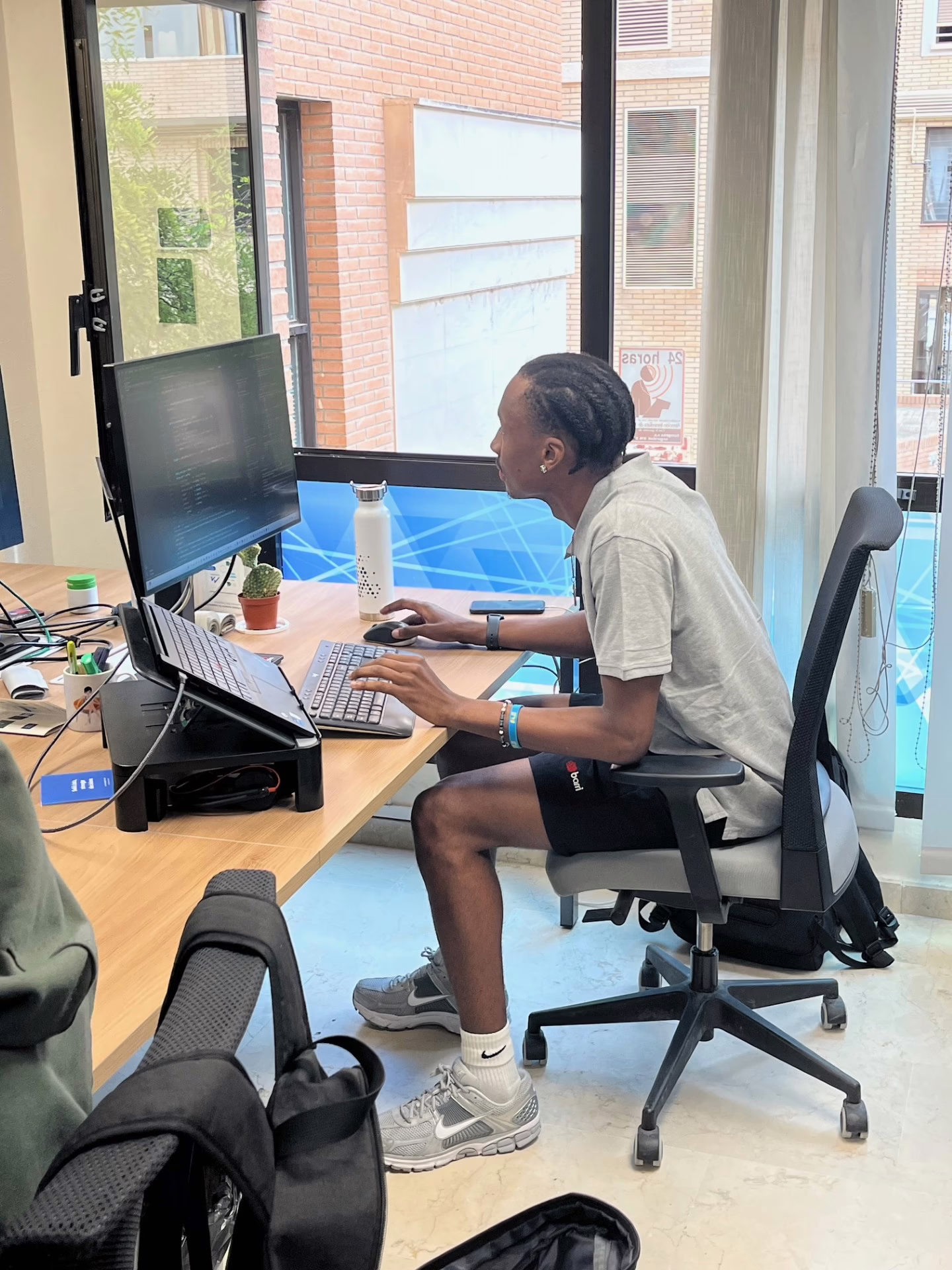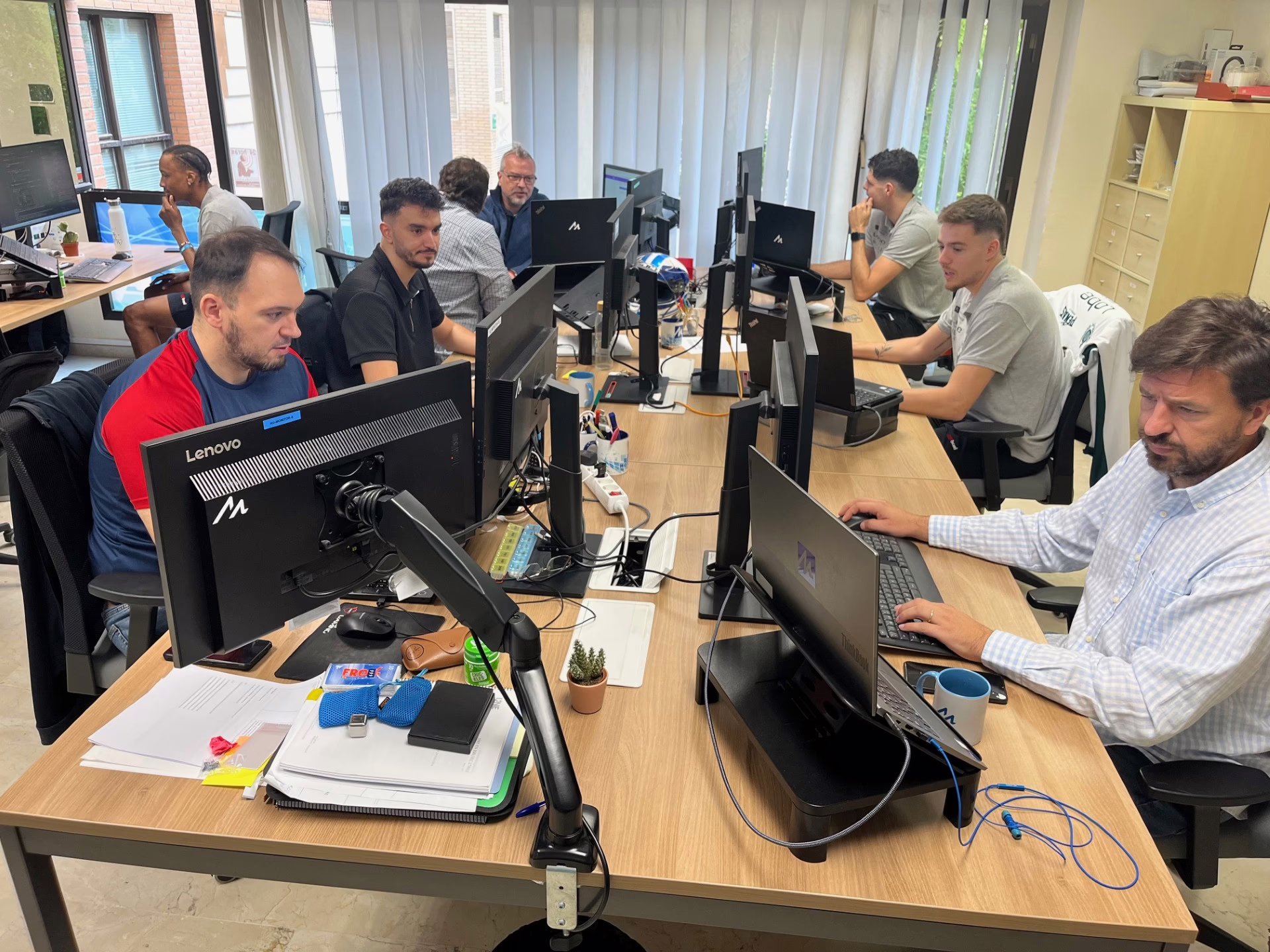 Al finalizar la rueda de prensa, los jugadores aprovecharon para conocer un poco más de cerca cómo trabajamos en nuestro día a día. Se sentaron junto a algunos de nuestros desarrolladores y pudieron ver de primera mano cómo se construyen los proyectos en los que estamos trabajando. Fue un momento distendido y enriquecedor para ambas partes.